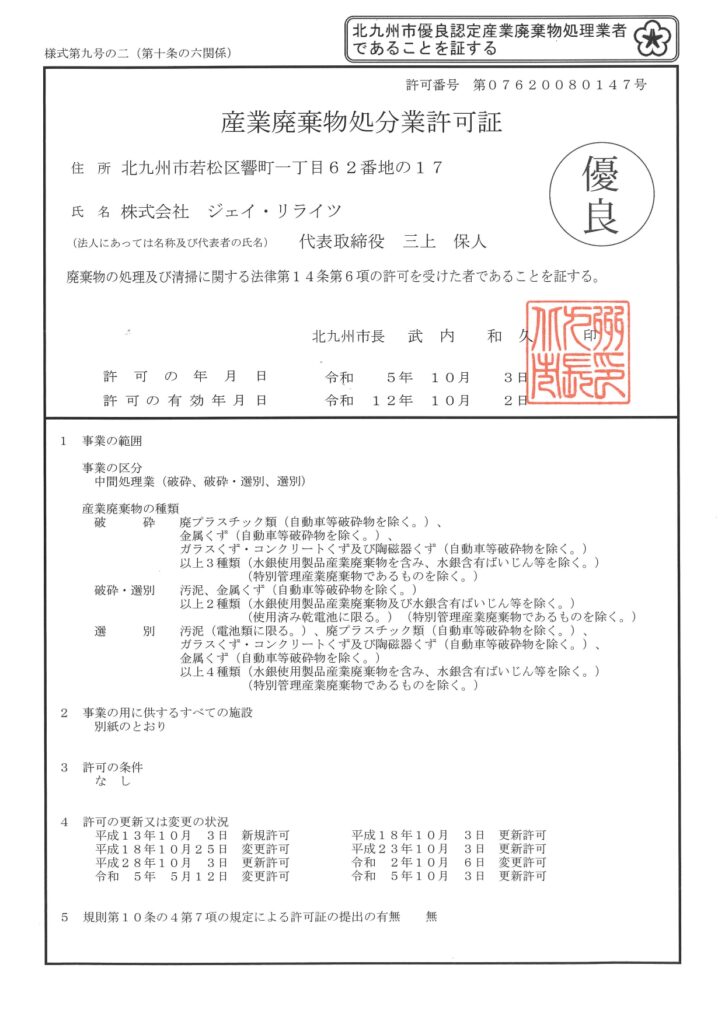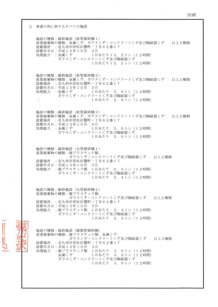 産業廃棄物許可証変更手続き完了しました。